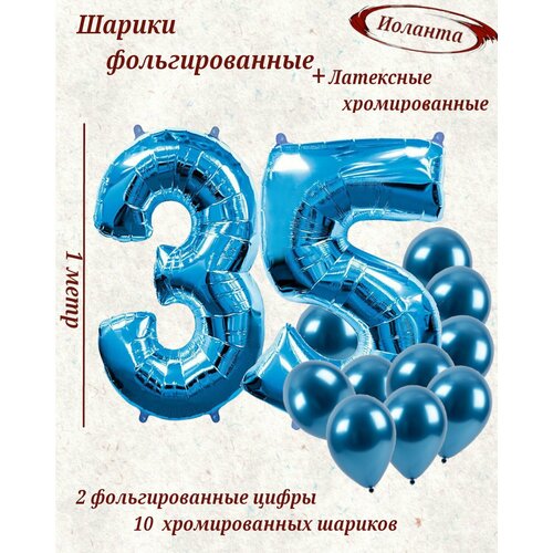 Набор воздушных шариков цифра " 35 " размер 102 см и 10 синих хромированных шаров 30 см