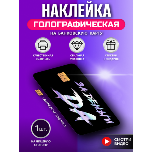 Наклейка на банковскую карту надпись мем "За деньги да" голографическая с вырезом под чип
