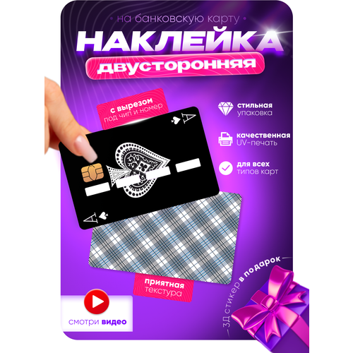 Двусторонняя наклейка на банковскую карту Туз черный пики с вырезом под чип и номер (цифры)