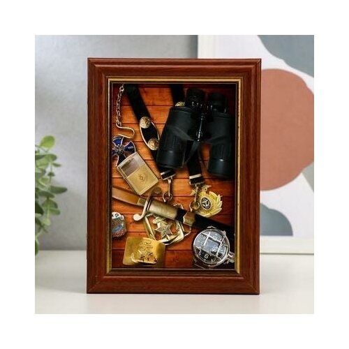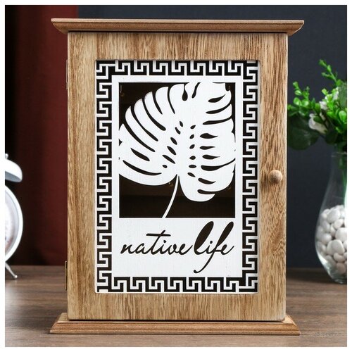 Ключница дерево 6 крючков "Пальмовый лист и греческий узор" 25,5х20,5х6,5 см