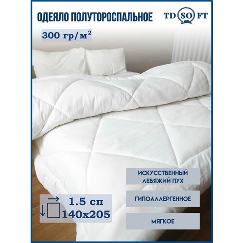 Одеяло ТД софт 1,5 спальное 140х205 толстое Зимнее, Всесезонное Искусственный лебяжий пух
