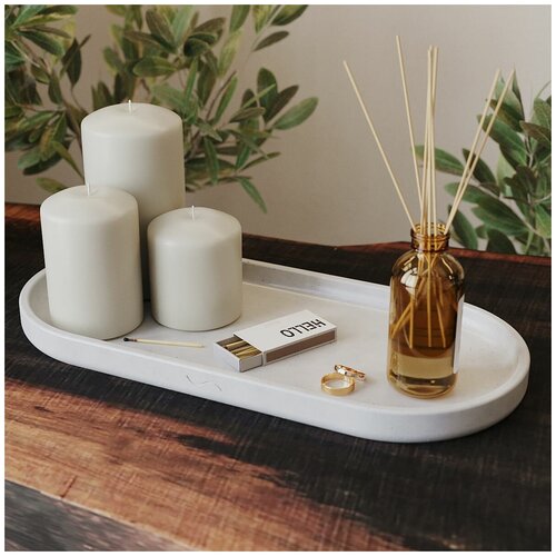 Декоративный поднос, подставка для украшений и свечей, органайзер для мелочей и косметики Dorian Long S, 40x20 см, бетон, кремовый матовый
