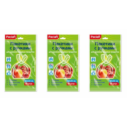 Paclan Пакетики с ручками для хранения пищевых продуктов, 50 шт, 3 рулона