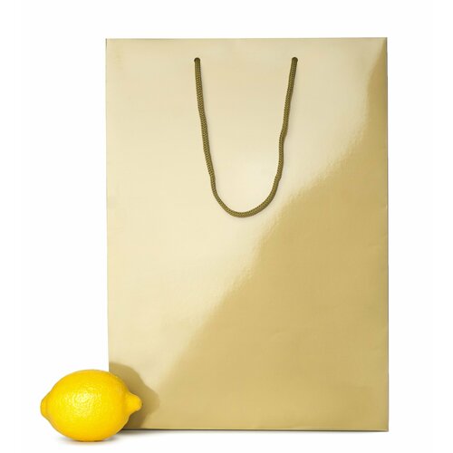 Пакет бумажный подарочный золотой вертикальный 25*35*10