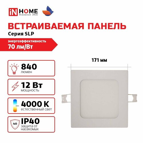 Светильник потолочный светодиодный SLP квадратный, 12 Вт, 4000 К, 840 Лм, 171мм, IP40, IN HOME