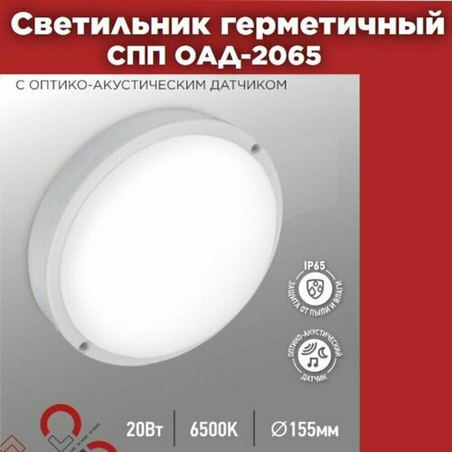 Светильник светодиодный герметичный СПП ОAД-2065-КРУГ 20Вт 6500К 1800Лм с оптико-акустическим датчиком IP65 155мм IN HOME