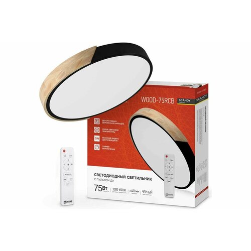 Светильник светодиодный SCANDY WOOD-75RCB 75Вт 230В 3000-6500K 6000Лм 400x50мм с пультом ДУ черный I