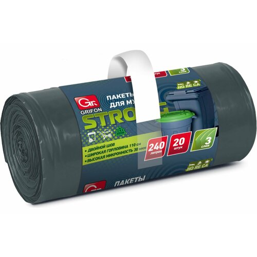 GRIFON Пакеты для мусора STRONG HoReCa, 240 л, 20 шт. в рул, 101-534