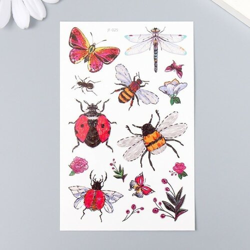 Татуировка на тело цветная "Лесные насекомые" 12х7,5 см
