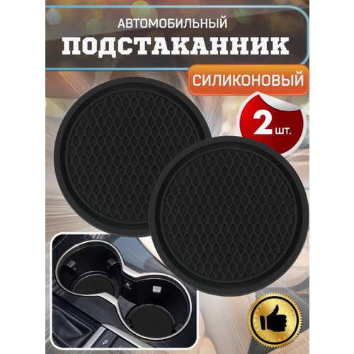 Подстаканник автомобильный со стразами, коврик 2 шт, цвет черный