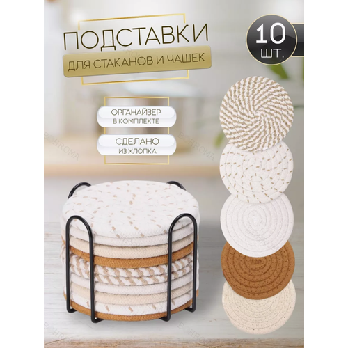 Набор хлопковых подставок под стаканы и чашки, подстаканники 10 штук