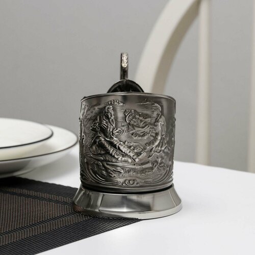Подстаканник «Охотник», стакан d=6,1 см, никелированный, с чернением