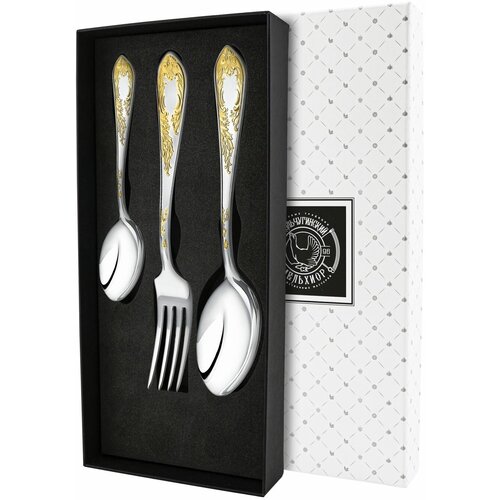 Набор столовый Кольчугинский мельхиор Жасмин с позолотой, 3 пр.