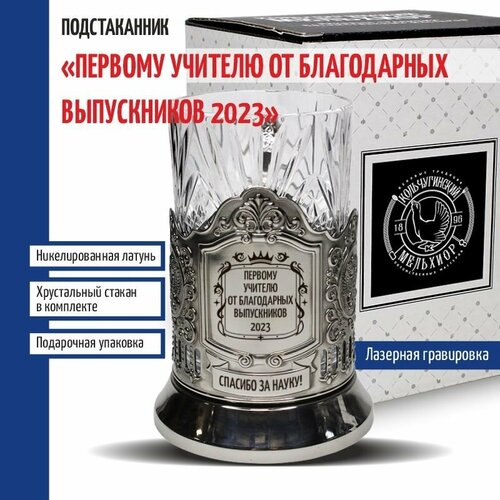 Кольчугинский мельхиор Подстаканник "Первому учителю от выпускников 2023" со стаканом (Кольчугино)