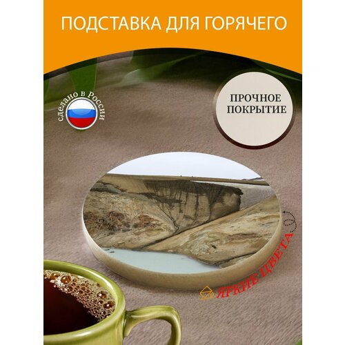 Подставка под горячее "Долина монументов, песок" 10 см. из блого мрамора