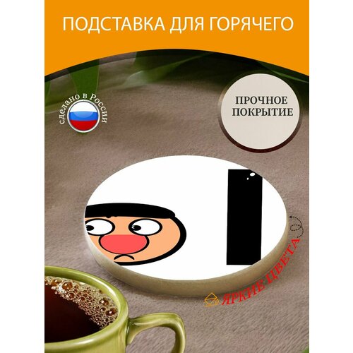 Подставка под горячее "Холодный, текст, слово" 10 см. из блого мрамора