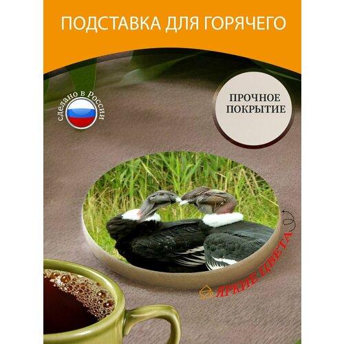 Подставка под горячее "Кондор, кондоров, андский кондор" 10 см. из блого мрамора