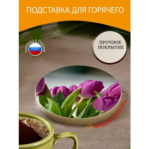 Подставка под горячее "Тюльпаны, тюльпан," 10 см. из блого мрамора