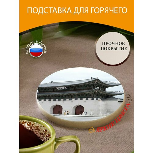 Подставка под горячее "Корея, южная корея, путешествовать" 10 см. из блого мрамора