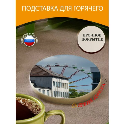 Подставка под горячее "Колесо обозрения, исправлено, в поле зрения" 10 см. из блого мрамора
