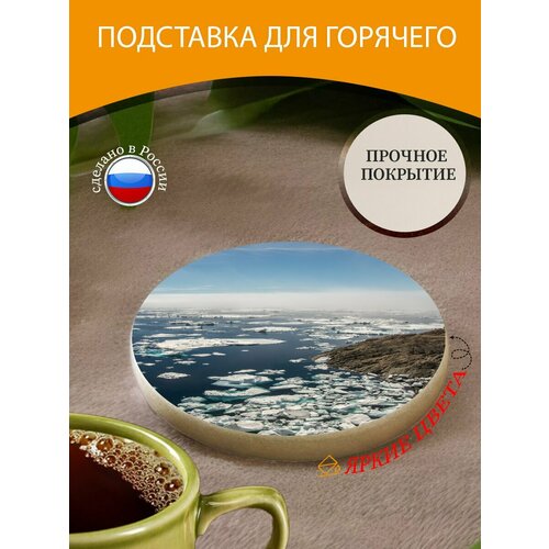 Подставка под горячее "Замороженный, море, пейзаж" 10 см. из блого мрамора