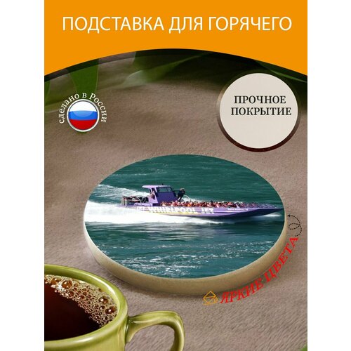 Подставка под горячее "Лодка, быстроходный катер, моторная лодка" 10 см. из блого мрамора