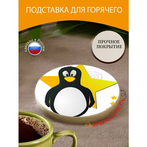 Подставка под горячее "Пингвин, смокинг, птица" 10 см. из блого мрамора
