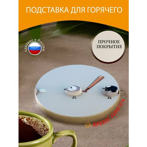 Подставка под горячее "Бейсбол, спорт, игра" 10 см. из блого мрамора