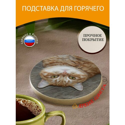Подставка под горячее "Кот, рыжий, портрет" 10 см. из блого мрамора