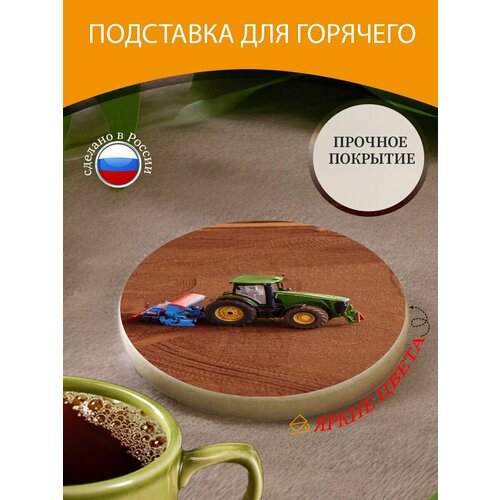 Подставка под горячее "Трактор, игрушка, игра" 10 см. из блого мрамора