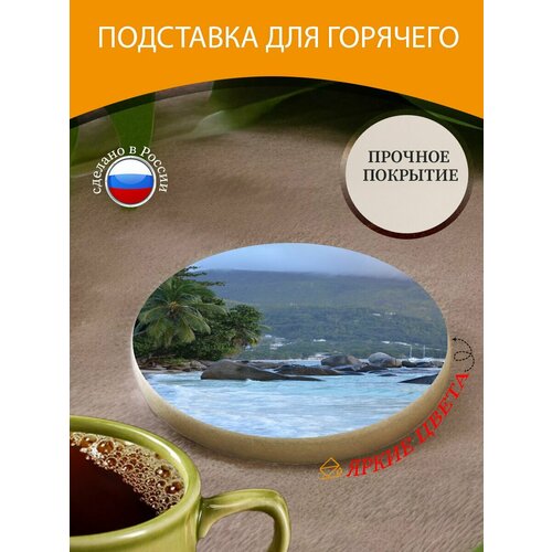 Подставка под горячее "Сейшелы, сейшельские острова, пляж" 10 см. из блого мрамора