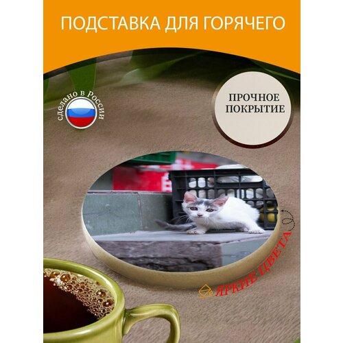 Подставка под горячее "Домашние животные, кошка, закрыть" 10 см. из блого мрамора