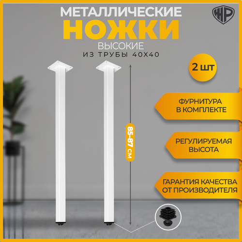 Ножки опоры для стола квадратные Железное решение высотой 85-87 см Опора металлическая Комплект ножек Лофт белые, 2 шт.