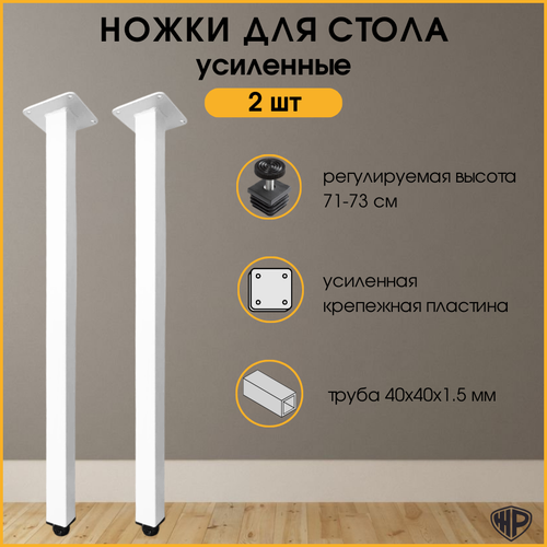Ножки опоры для стола квадратные высотой 71-73 см - 2 шт/белые / регулируемые/ комплект ножек/ ножка мебельная