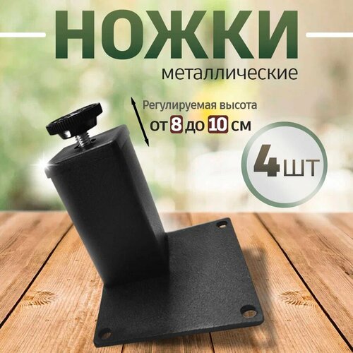 Ножки для мебели металл регулируемые опоры черные 10 см, 4 шт
