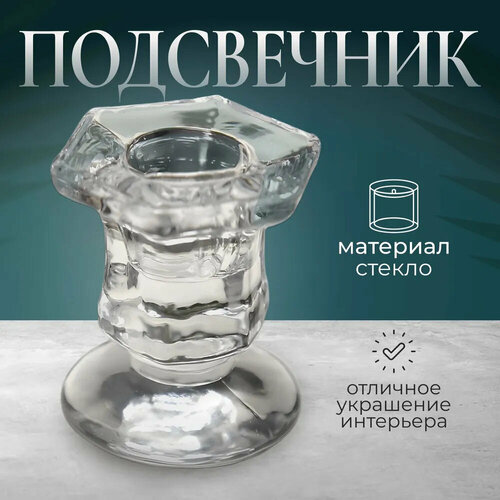 Подсвечник стеклянный Юнона прозрачный для 1 свечи, 6х5х4,5 см