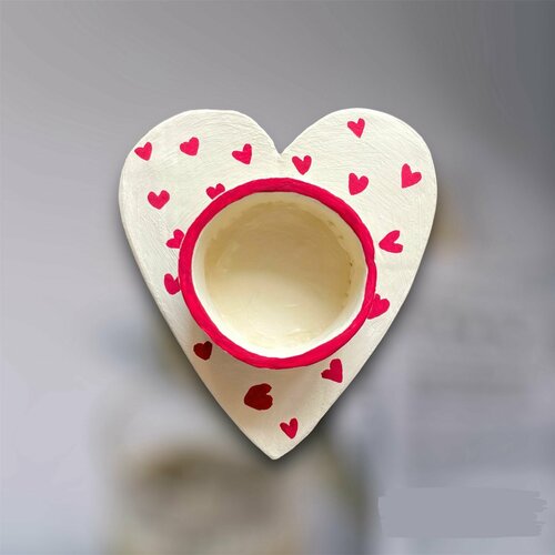 Подсвечник для длинных свечей из глины ручной работы / Декоративный подсвечник сердце для чайных маленьких свечек/ подсвечник ручной работы сердечко