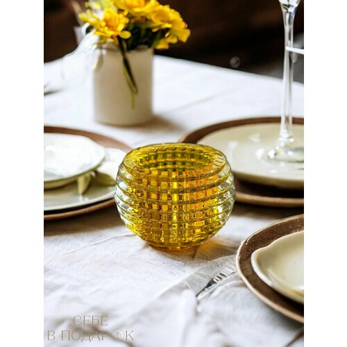 Подсвечник металл, стекло на 1 свечу "Тицино" d-6 см, золото 11,5х11,5х38 см
