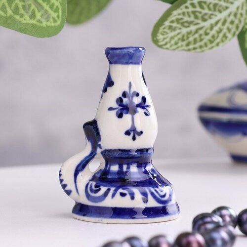 Подсвечник керамика на 1 свечу "Капля" d=5 см серебро 11х9х8 см