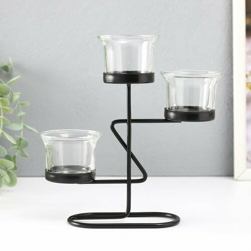 Подсвечник металл, стекло на 3 свечи "Кривая линия" d=2-5 см чёрный 16х6х18,5 см