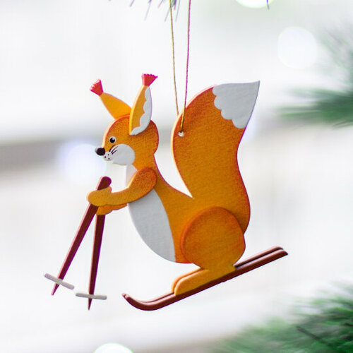 Игрушка елочная деревянная 'Белка на лыжах'