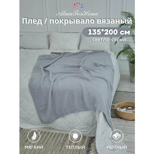 Плед-покрывало вязаный AlmaForHome SunnySmile светло-серый 135х200см.