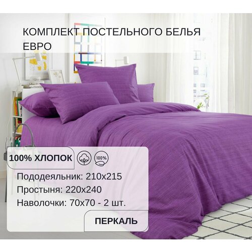 Постельное белье однотонное евро, перкаль, простыня евро, хлопок 100%, наволочки 70x70, ивановский текстиль постельное белье, рис. Дикая орхидея