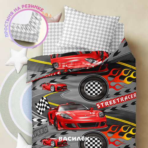 Детское постельное белье Василек юниор на резинке 160х80 см, Бязь, Гонки
