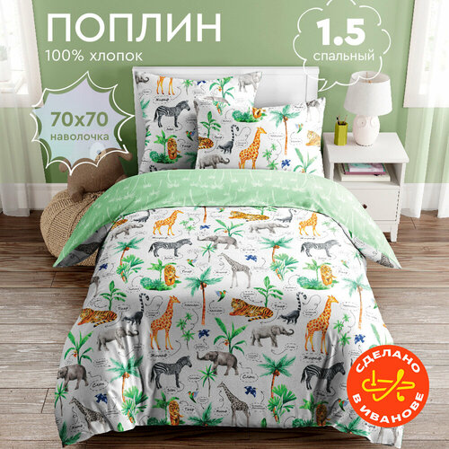 Постельное белье "Василек" 1,5-спальное Поплин Зоопарк