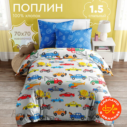 Постельное белье "Василек" 1,5-спальное, Поплин, Транспорт
