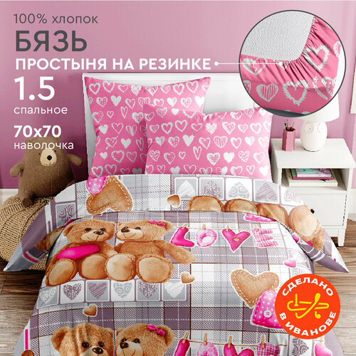 Детское постельное белье Василек 1.5-спальное на резинке 90х200 см, Бязь, Любимый мишка