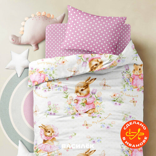 Детское постельное белье Василек юниор 160х80 см, Поплин, хлопок 100%, Зайки
