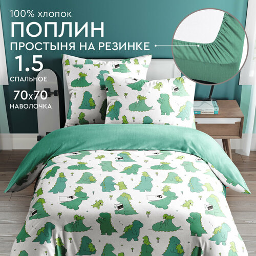 Детское постельное белье Василек 1.5-спальное на резинке 90х200 см, Поплин, Дино