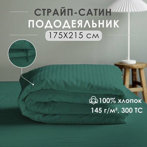Пододеяльник, 2 спальный, на молнии, страйп-сатин Antonio Orso 175х215 см, Зеленый
